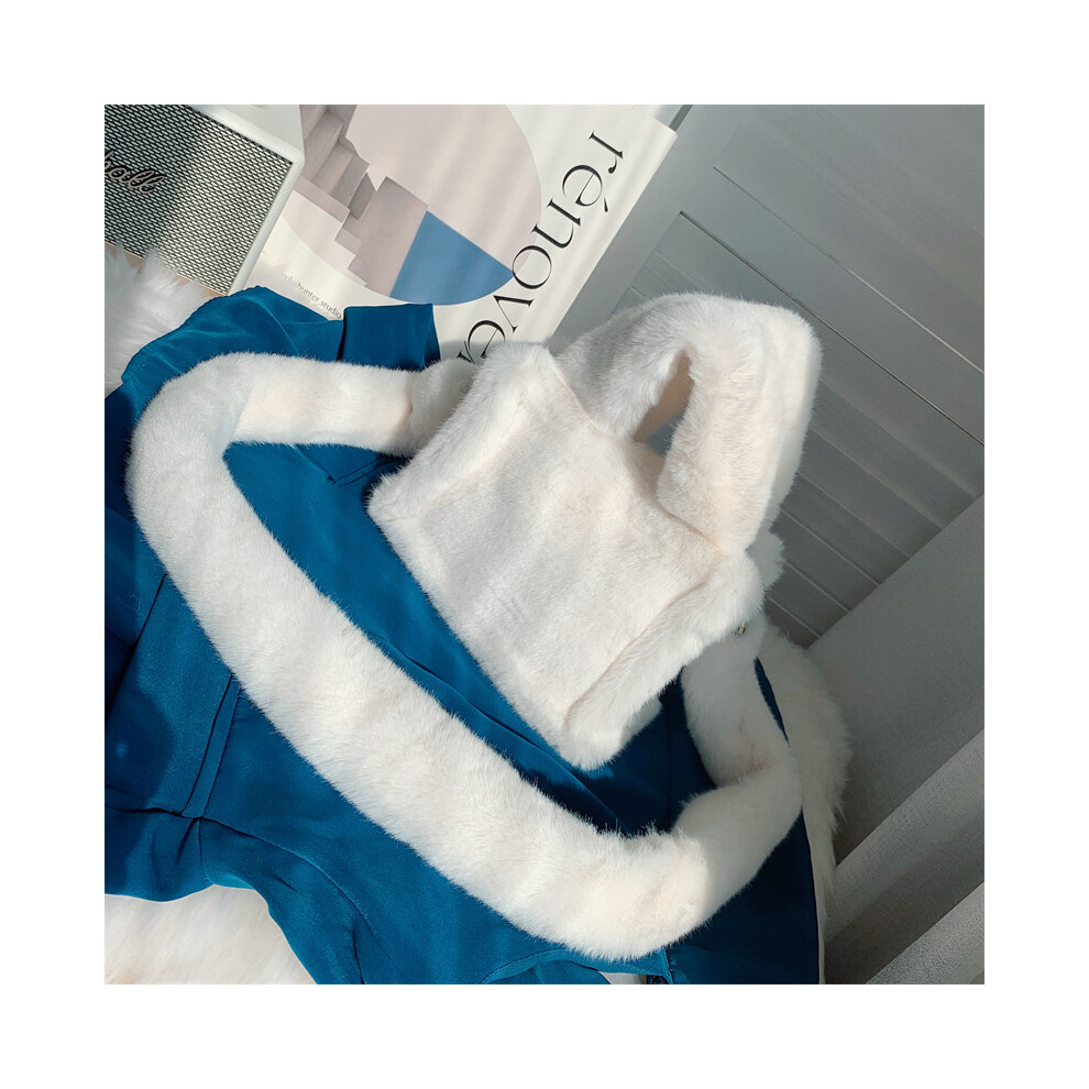 (White) Women Fluffy Satchel Bag Soft Casual Furry Handbags Ladies Dating Bag (Black)