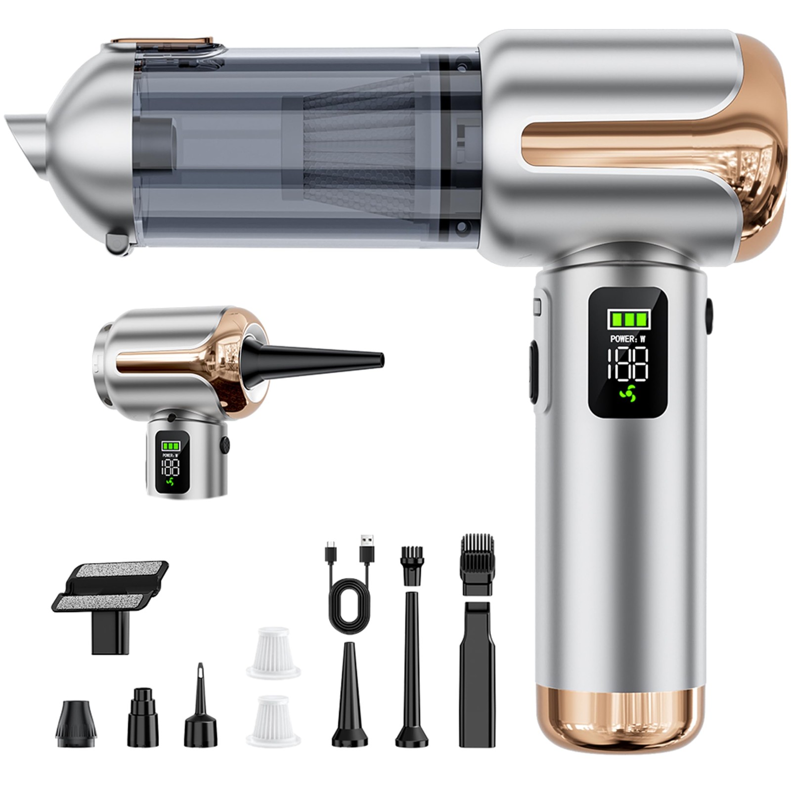 Handheld Car Vacuum cleaner & Air Blower Cordless â Mini Powerful 12000Pa Suction, Portable Small Hoover, HEPA, Accessories for Interior, PC, Home &