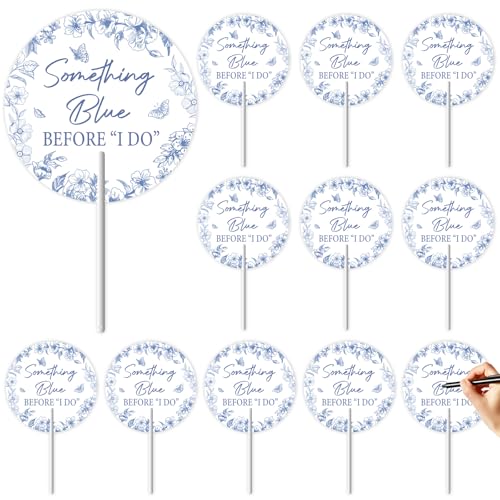 Cheerupp 12 PCS Something Blue Before I Do Bridal Shower Hand Fans Bulk, Blue Floral Bridal Shower Wedding Handheld Fans Plastic for Guest Favors Gifts, Spring Flower Garden Theme Party Decor Supplies