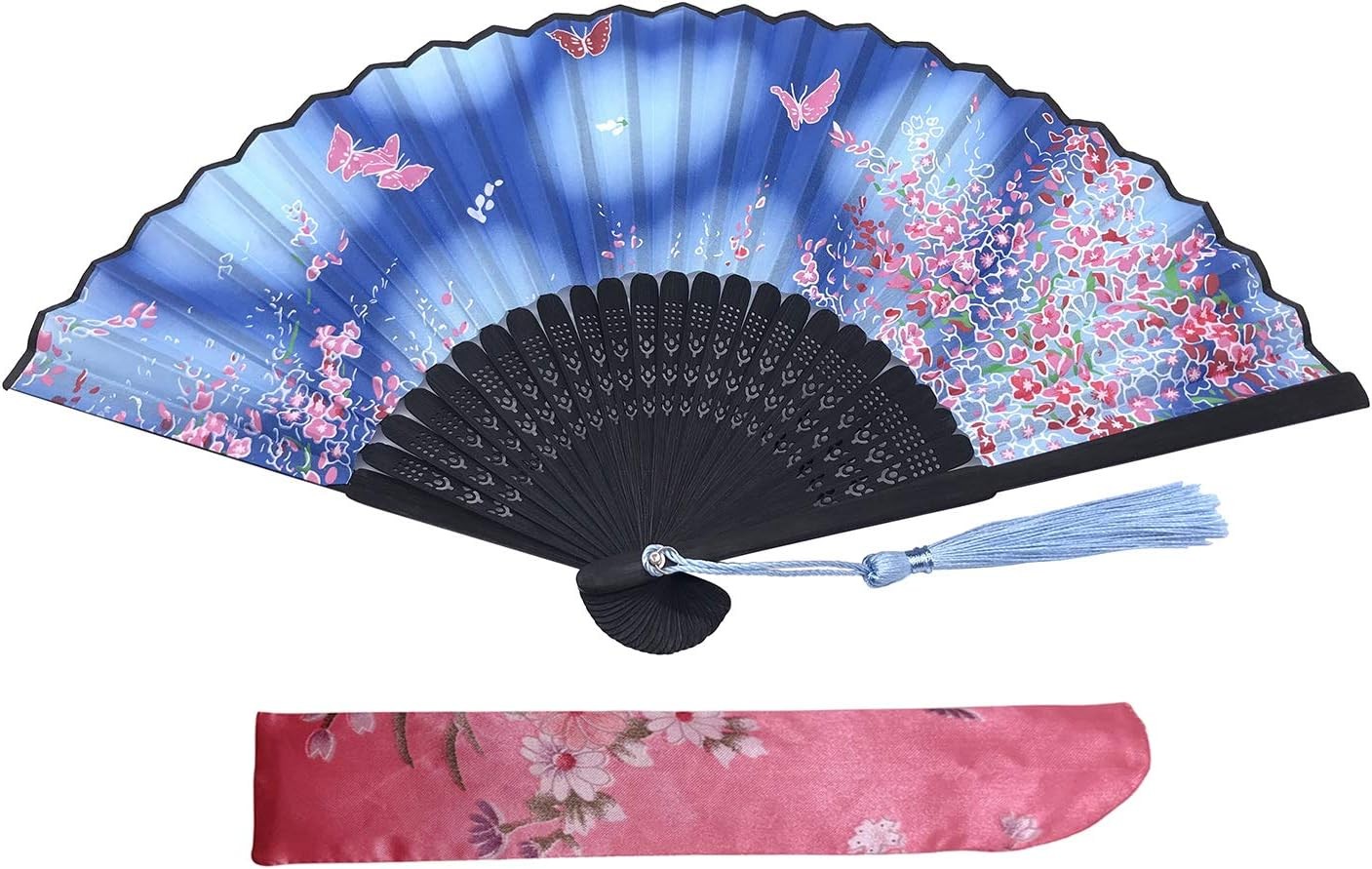 FOSDICK 2 Pieces Hand Fan Folding, Handheld Folding Fan, Portable Hand held Fans Folding, Chinese Traditional Fan handheld Fabric for Wedding, Gifts, Performance, Dancing, Home Decoration