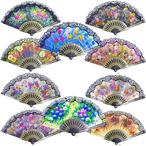 Grosun 10 Pieces Spanish Hand Fan Spanish Fans Handheld Fan for Women Floral Spanish Folding Fan Foldable Fan Vintage Fans Handheld Hand Fan for Wedding and Party Decoration, Random Color