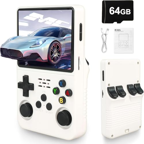 Blidinner R36S Retro Handheld Games Console -With Linux System,3000mAh Battery,3.5 Inch Screen,64G TF Card,20000+ Classic Games,Portable Game Console for Present to Give Friends for Christmas-White