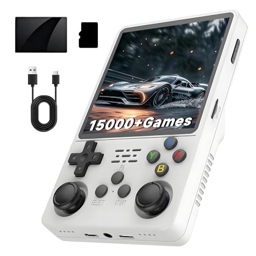 R36S Retro Handheld Games Console - 3.5" IPS Display, 21000 Classic Games 3500mAh Battery, Linux System Portable Mini Game Console-White||64G