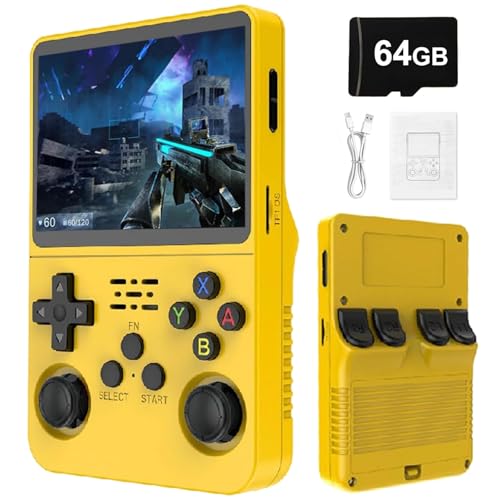 R36S Retro Handheld Games Console - 3.5" IPS Display, 21000 Classic Games 3500mAh Battery, Linux System Portable Mini Game Console-Yellow||64G