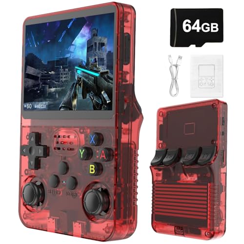 R36S Retro Handheld Games Console - 3.5" IPS Display, 21000 Classic Games 3500mAh Battery, Linux System Portable Mini Game Console-Red||64G