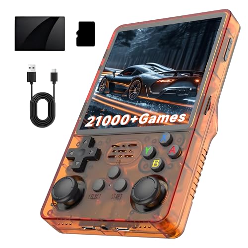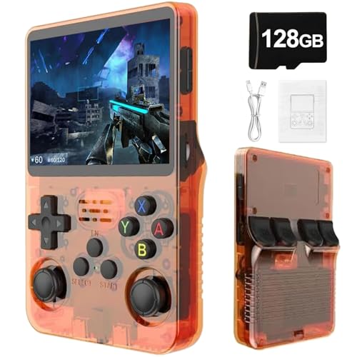 R36S Retro Handheld Games Console - 3.5" IPS Display, 21000 Classic Games 3500mAh Battery, Linux System Portable Mini Game Console-Orange||128G
