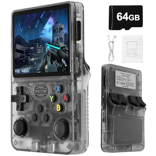 R36S Retro Handheld Games Console - 3.5" IPS Display, 21000 Classic Games 3500mAh Battery, Linux System Portable Mini Game Console-Black||64G