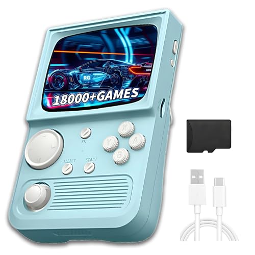 HKOORLAMULS R36T Handheld Games Console 64G,Portable Retro Gaming Preload with 18000+ Games with 27 Emulators,Vintage Game Console 3.5 Inch IPS Screen 640 * 480 Display, Light Blue