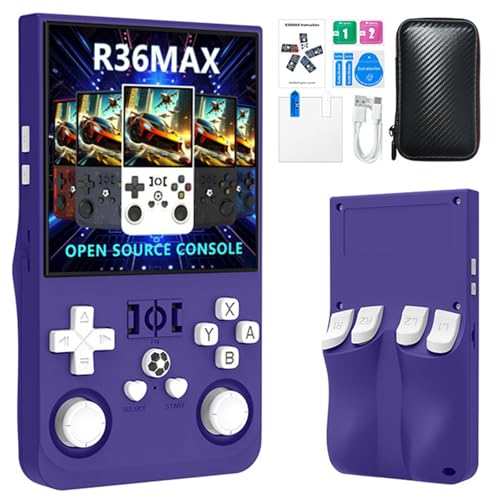 R36S Retro Handheld Games Console - 3.5" IPS Display, 21000 Classic Games 3500mAh Battery, Linux System Portable Mini Game Console-Purple||128G