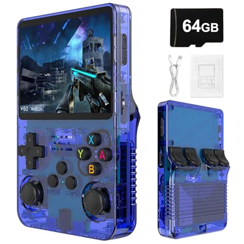R36S Retro Handheld Games Console - 3.5" IPS Display, 21000 Classic Games 3500mAh Battery, Linux System Portable Mini Game Console-Blue||64G