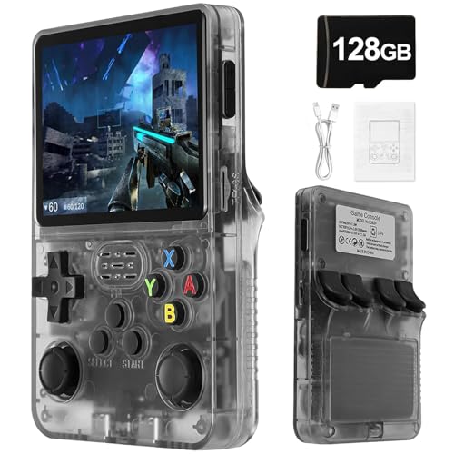 R36H Handheld Retro Games Console 128G, Retro Video Gaming Console with Built in 22000+ Retro Games 23 Emulators, Open Source Linux System, 3.5 Inch IPS Screen, 640 x 480 Resolution (Black)