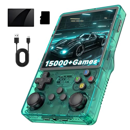 R36S Retro Handheld Games Console - 3.5" IPS Display, 21000 Classic Games 3500mAh Battery, Linux System Portable Mini Game Console-Green||64G