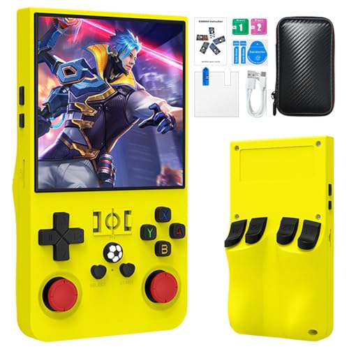 R36S Retro Handheld Games Console - 3.5" IPS Display, 21000 Classic Games 3500mAh Battery, Linux System Portable Mini Game Console-Yellow||128G