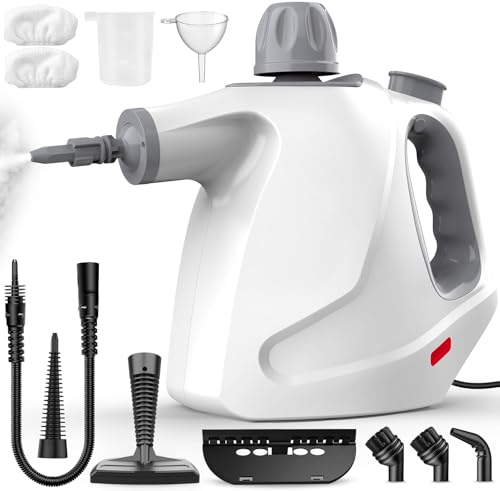 2500W Handheld Steam Cleaner for Home,Portable Steamer Cleaning Machine with Large Capacity Tank & 10 Accessories,Multipurpose Steamer for Kitchen, Bathroom, Tile, Grout,Car Detailing (White)