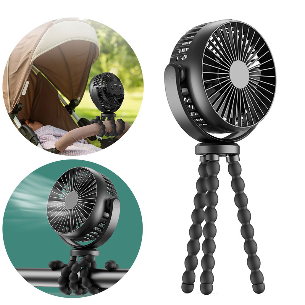 Stroller Fan Portable Handheld Tripod Design Mute 4 Level Speed USB Rechargeable