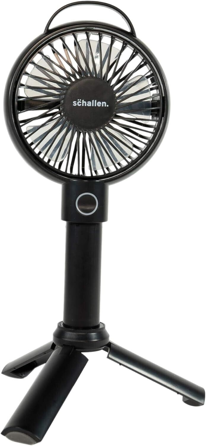 Schallen Rechargeable Handheld Fan Tripod Battery USB Electric Portable - BLACK