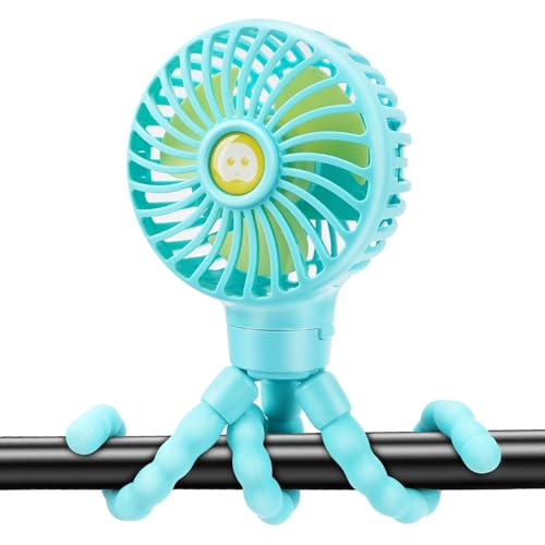 welodorir Portable Pram Fan, Rechargeable Small Mini Clip on Fan, 2500 mAh 3 Speed 360° Rotate with Flexible Tripod Handheld Desk Fans for Stroller, Car Seat Crib Treadmill Travel outdoor Blue