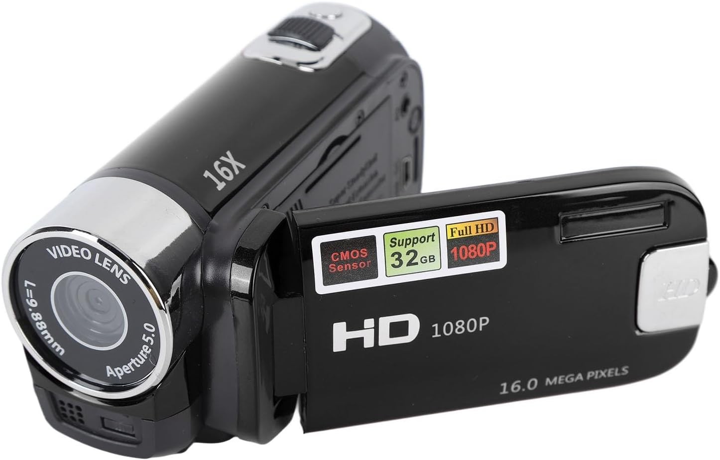 Digital Camcorders, Handheld 270° Rotation 16X Zoom Video Camera Camcorder Full HD 1080P 2.7inch Color Screen for Gifts for Kids for Family(black)