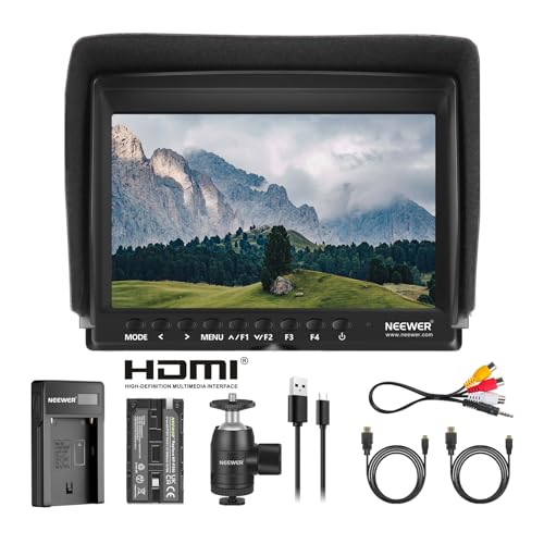 Neewer F100 7inch Camera Field Monitor HD Video Assist IPS 1280x800 HDMI Input 1080p with Sunshade and Ball Head for DSLR Cameras, Handheld Stabilizer, Film Video Making Rig (Battery Not Included)