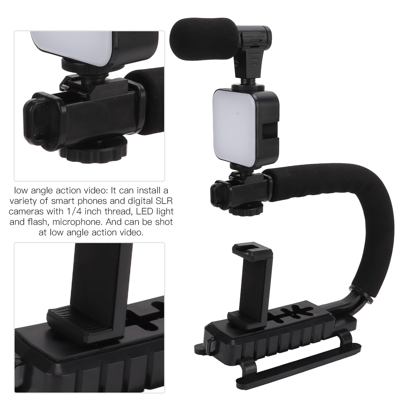 Handheld Video Camera Stabilizer With LED Light Microphone Portable U Shape