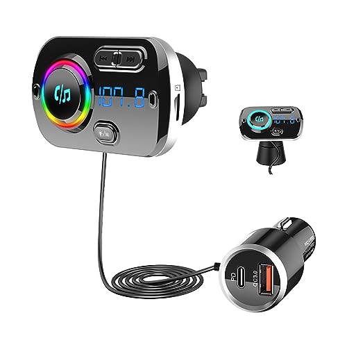 SONRU 2025 Newest FM Transmitter Bluetooth 5.3, Car Radio Adapter Hands-Free Car Kit, PD3.0 30W Type C & QC3.0 Fast Car Charger, Support TF Card, AUX Output, Crystal Sound, 1.1M Cable, 2 Install Ways