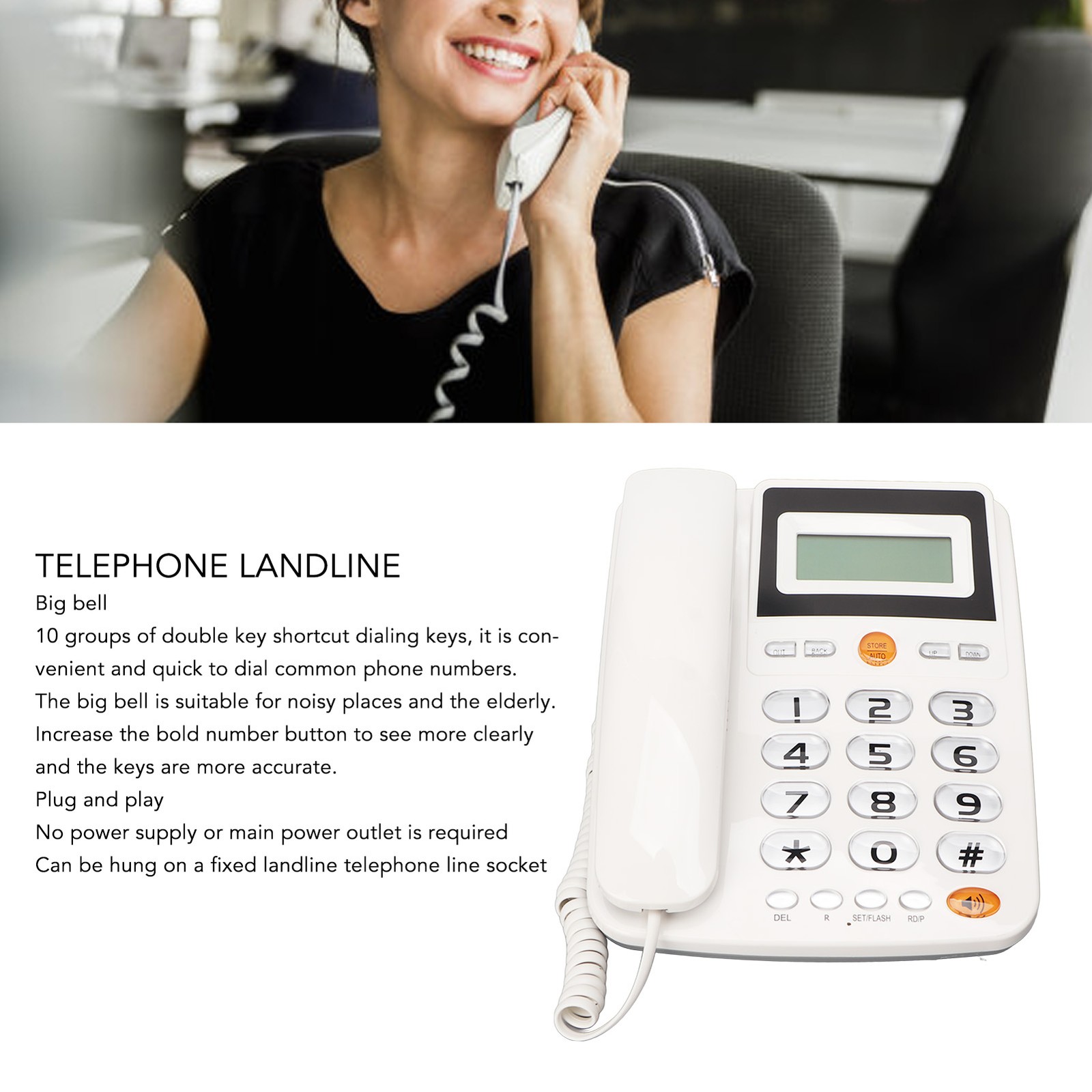 Home Office Corded Landline Phones, Adjustable Volume Hands-Free Desk Telephone with HD Call Quality and Ergonomic Design, Good Quality, Good Quality