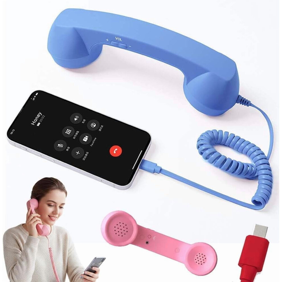 Retro Phone Handset for Home Office Travel, Versatile Hands-Free Telephone with Ergonomic Design, Tangle-Free Cord & Universal Type-C Compatibility