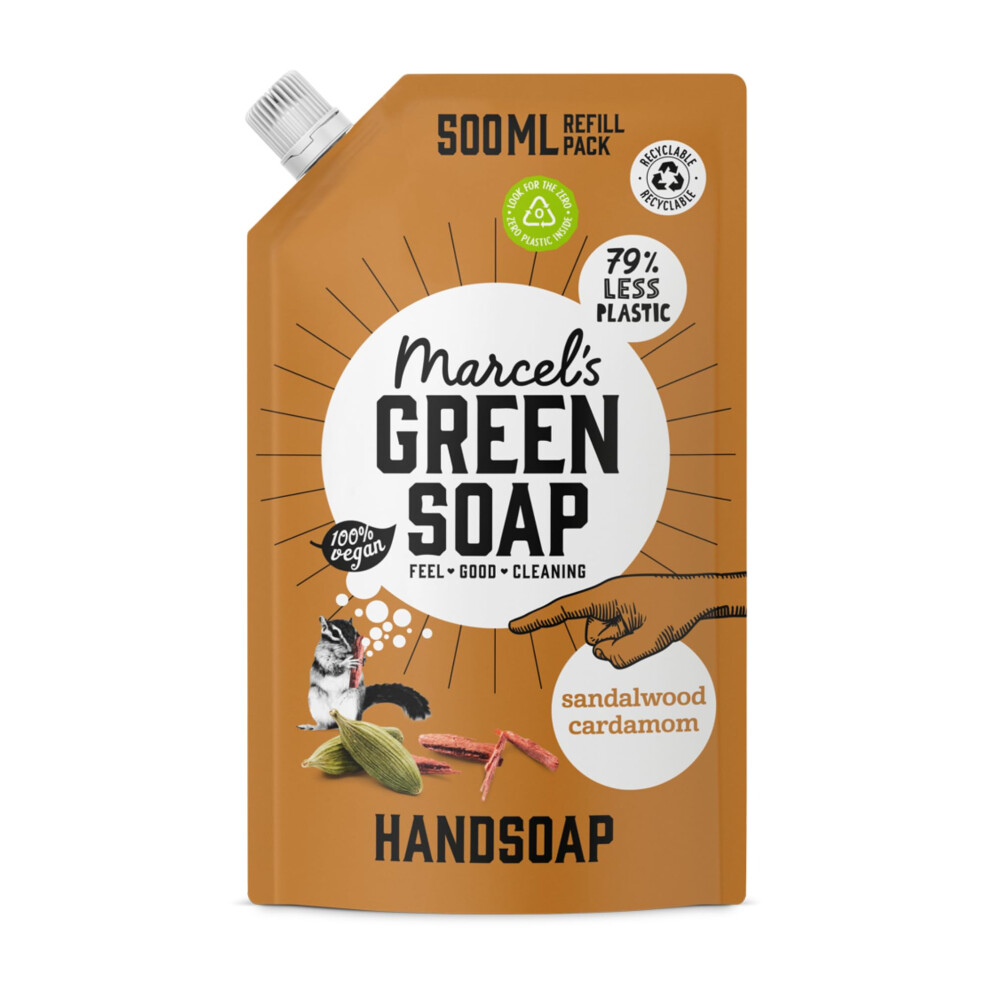Marcel's Green Soap - Hand Soap Refill Sandalwood & Cardamom - Handwash Dispenser Refill - Eco friendly - 100% Vegan - 97% Biodegradable - 500 ML
