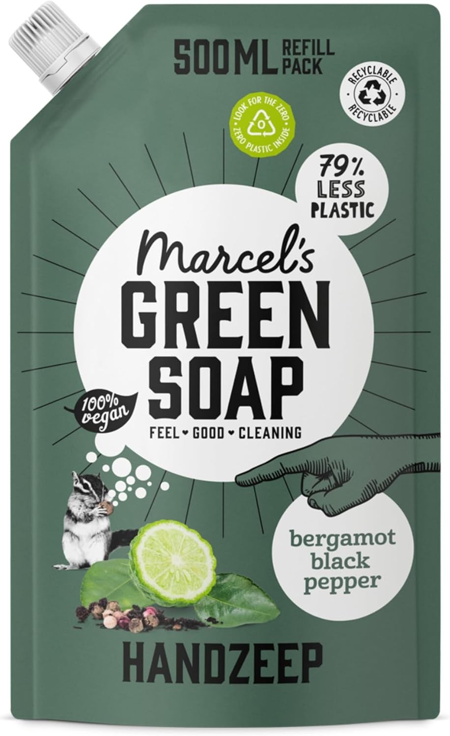 Marcel's Green Soap - Hand Soap Black Pepper & Bergamot Refill - Handwash Refill Pack - Eco friendly - 100% Vegan - 97% Biodegradable - 500 ML