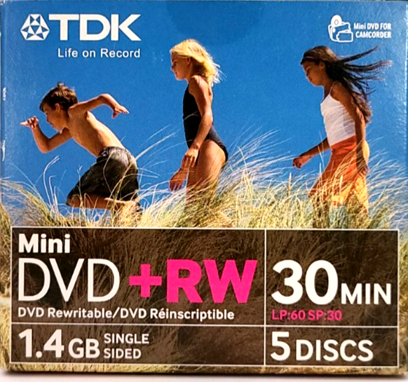 TDK Mini DVD-RW-14SPEB 5 PACK / 30 Mins Video Camera Handy Cam Camcorder Discs