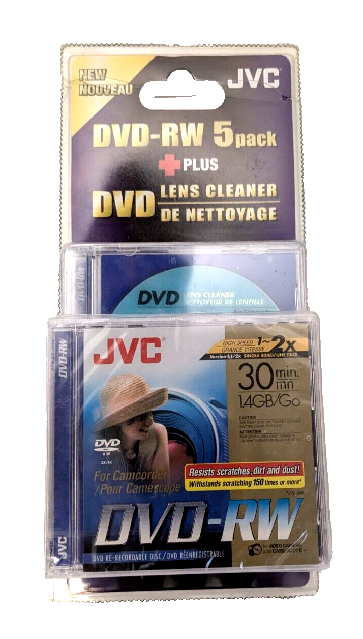 JVC VD-W14DU Mini DVD-RW Discs 5 PACK + DVD Lens Cleaner CAMCORDER HANDY CAM NEW