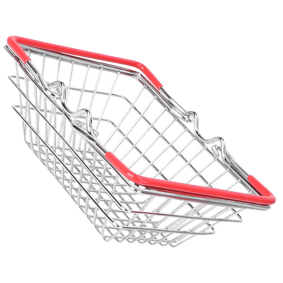 Small Red Mini Metal Wire Basket Handy Shopping Toy for Home Use