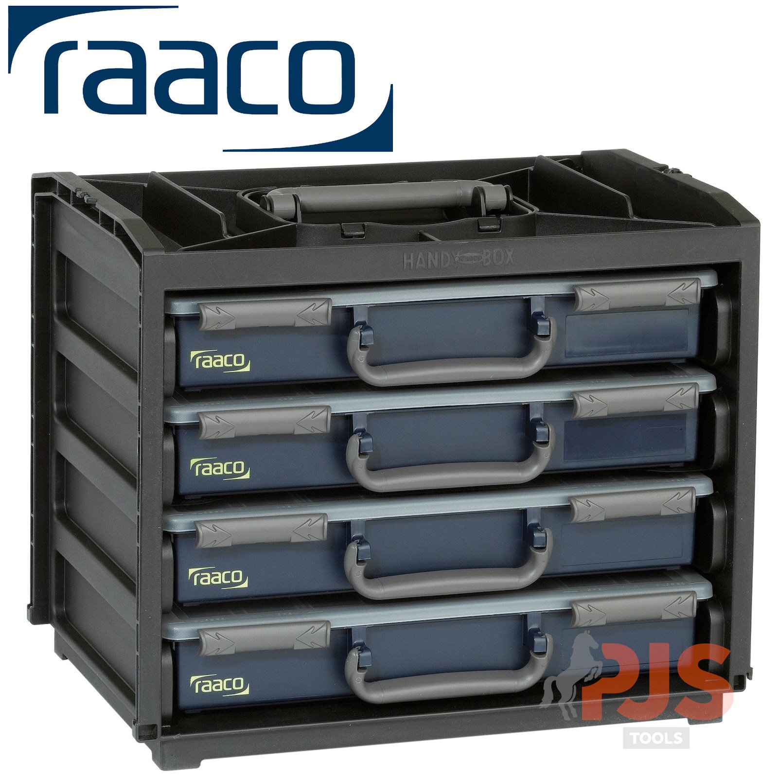 raaco 136242 HandyBox 55 a lightweight robust portable storage unit comes with 4 Raaco Assorter 55 service assorter 55 cases are fitted with sliding