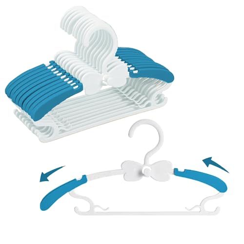 HGYZE Baby Hangers for Closet 20pcs 11-14" Kid Hanger for Nursery, Adjustable Infant Cloth Hanger for 0-18yrs Girl Boy, Plastic Newborn Coat Hangar, Non-Slip Child Pant Rack for Toddler, Blue Perchas