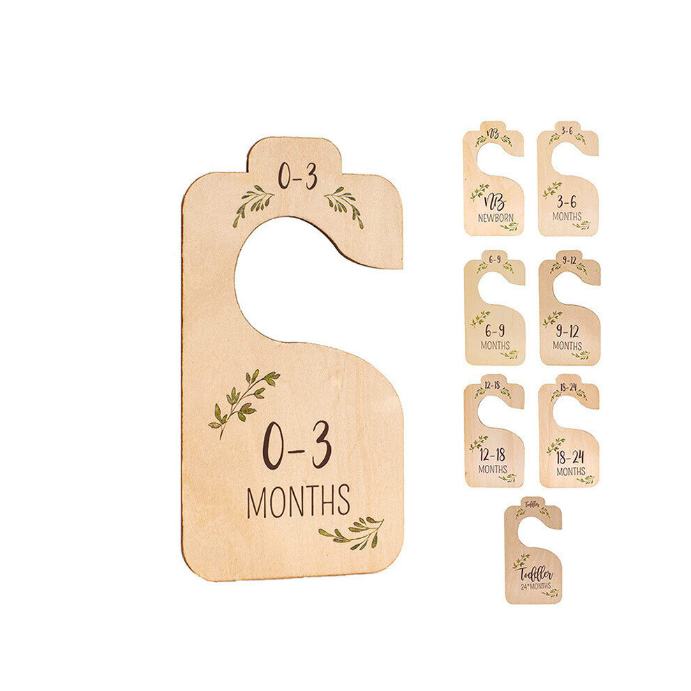 7 Pcs Baby Closet Size Dividers Wooden Baby Closet Organizers Newborn Infant to 24 Months Card Clothes Hanger Carved Hanging