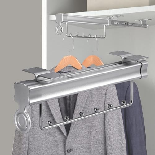 YCVAWEOD Extendable Down Closet Rod - Aluminium Pull Down Wardrobe Lift Retractable Cabinet Rail Hanger for Clothes Adjustable Clothing Finishing Rack Space-Saving nizer LWX
