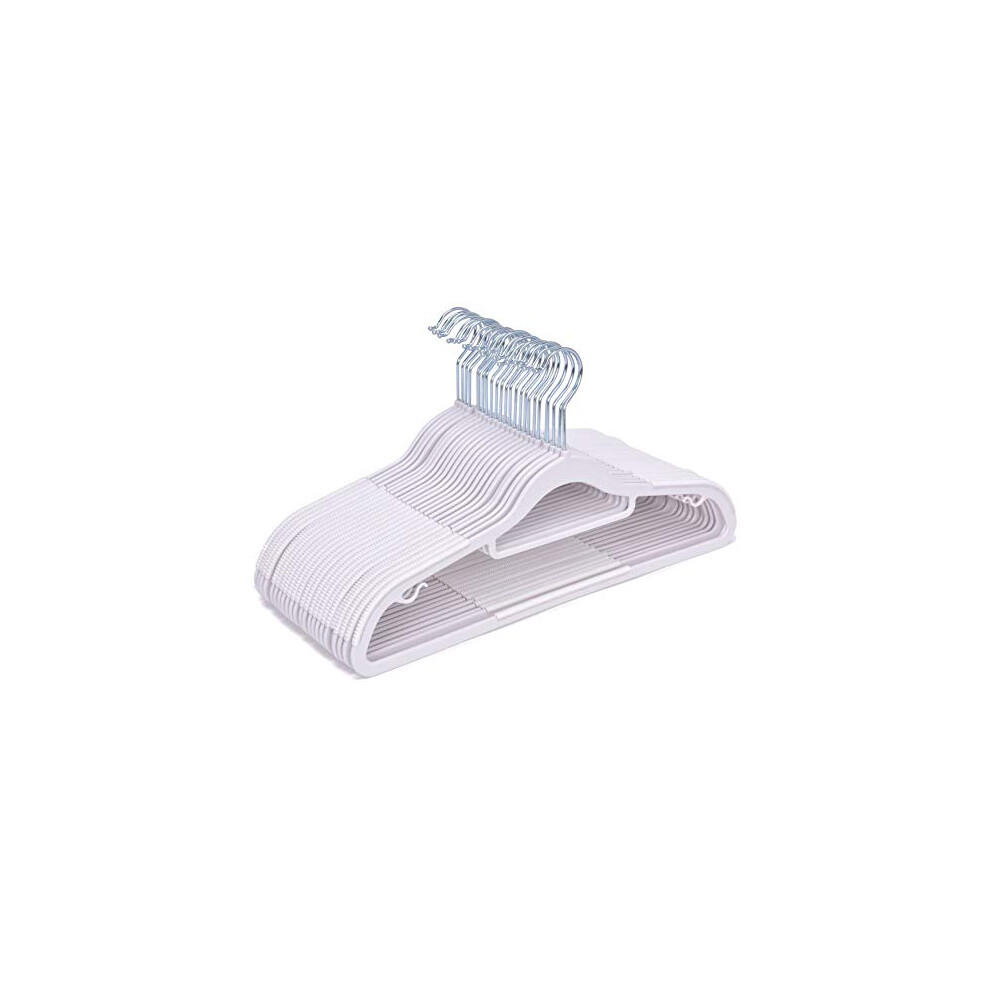 Quality Suit Hangers 50-Pack, Non-Velvet Plastic Hangers for Clothes Ultra Thin Space Saving 360 Degree Swivel Hook Strong Clothes Hangers Hold Up-To 10 Lbs, for Coats, Jackets, Pants (White, 50)