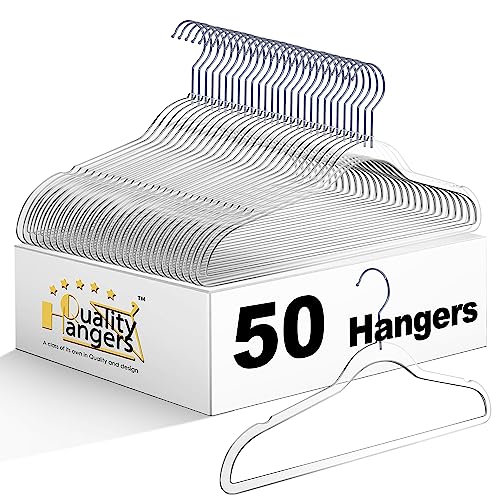 Quality Hangers Clothes Hangers 50 Pack - Non-Velvet Plastic Hangers for Clothes - Heavy Duty Coat Hanger Set - Space-Saving Closet Hangers with White