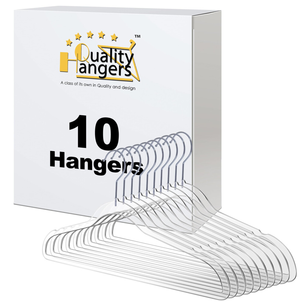 Quality Hangers Clear Plastic Hangers for Clothes | 10 Pack - 16.5 Inch | Heavy Duty Hangers Space Saving Crystal Clear Acrylic Hangers | 360 Degree S
