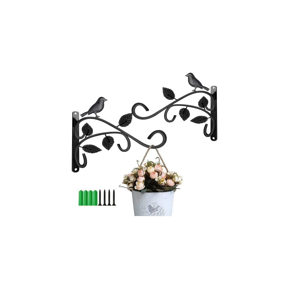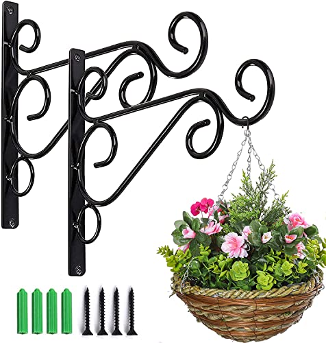 2 Par Heavy Duty Wall Hanging Basket Brackets, Hanging Brackets Hooks,Plant Hooks Metal Wall Bracket for Hanging Plants Lanterns Bird Feeders,Gar