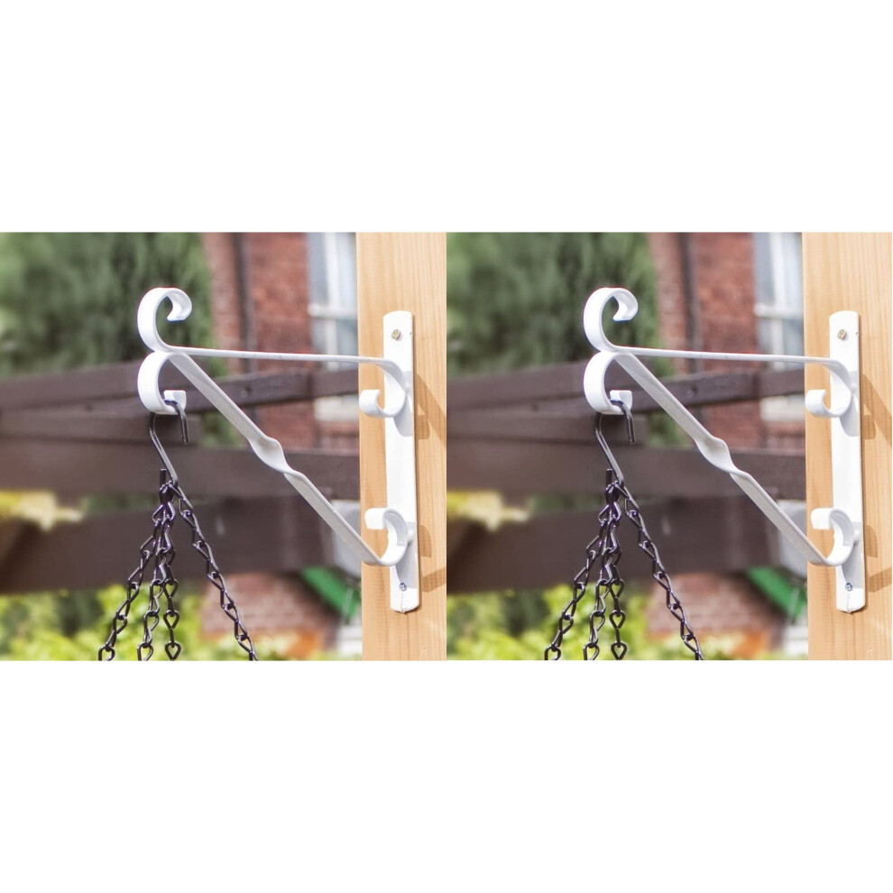 2 White Hanging Basket Brackets 10 Inch 25cm Metal Flower Basket Hook