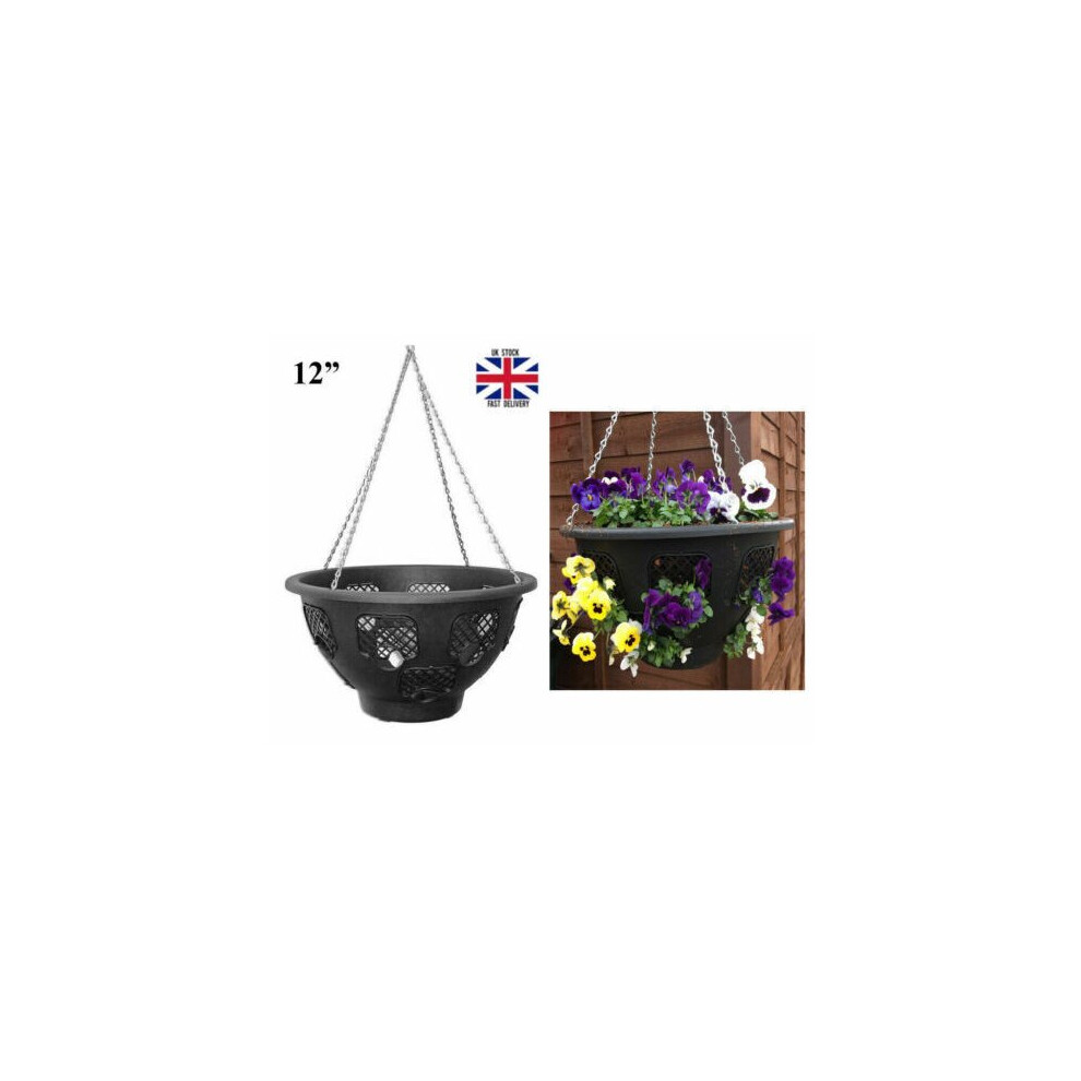 (12 INCH HANGING BASKET PACK OF 1) GARDEN HANGING BASKET. WALL BRACKETS & JUTE LINER