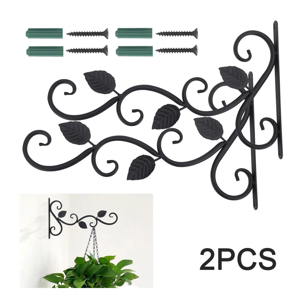 Hanging Basket Brackets Plant Hook,2-Pack Metal Outdoor Garden Balcony Railings Wall Hook Hangers Bracket Hanging Plants Flower Lanterns,Leaf Black