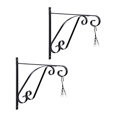 Relaxdays Hanging Basket Brackets, Set of 2, Wall-Mounted Hooks, 28 x 30 x 2 cm, Flower & Plant Pot Hanger, Iron, Black