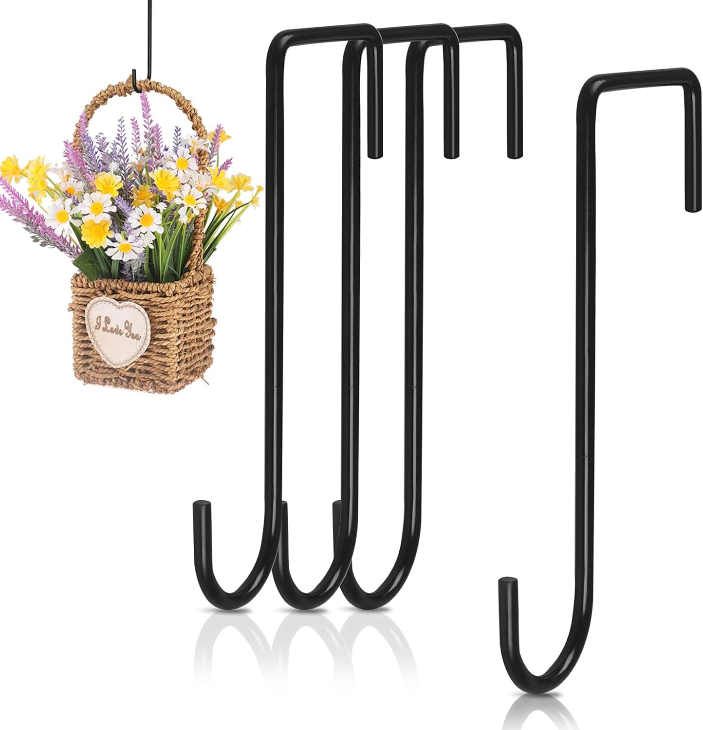 Steel Hanging Basket Brackets with Planters 4 Pcs, Sturdy Hanging Decorative Hooks for Garden, Porch, Balcony (? 40 x 63 cm)