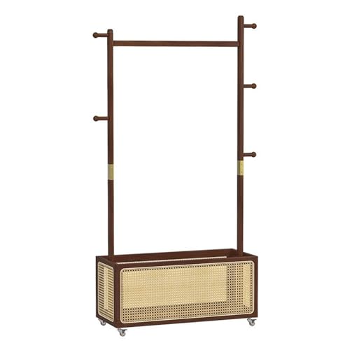 QJWMatic Coat Stand Mobile Clothes Hanger Floor Standing with Woven Storage Basket, Clothes Hanging Storage Organiser for Bedroom Hallway Living Room B,60CM
