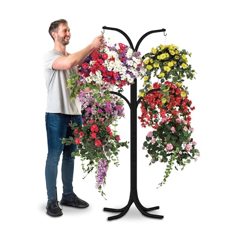Bishop Hanging Basket Bracket Stand 6-Arm - 169cm, Black Powder Coat Display Stand for Garden Hanging Baskets, Outdoor Planters & Flower Hanging Basket for Patio & Outdoor Plant Stand