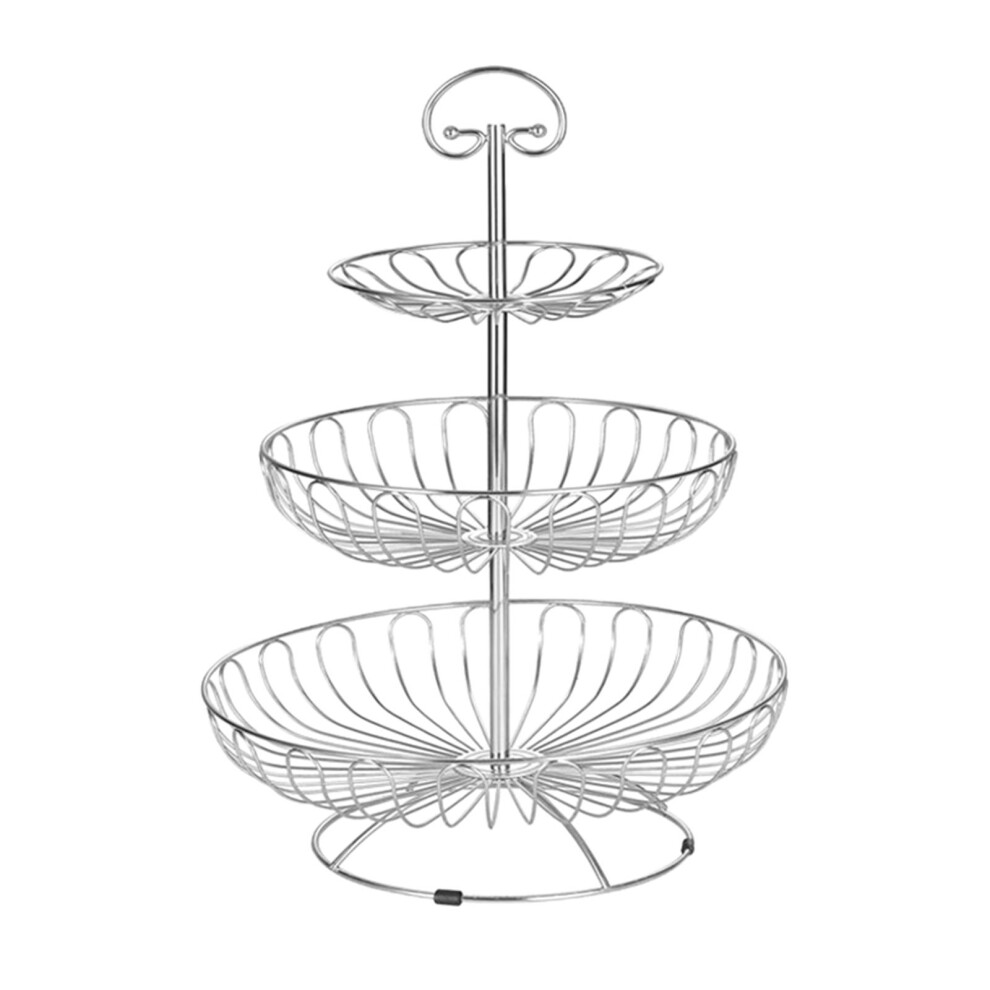 drburpily Stainless Steel Three Tier Fruit Basket Bowl Holder With Banana Hanger And Easy Installation Any Home Hanging Detachable Metal Wire Fruit Bowl Stand Vegetable Organizer Storage Stand Holder