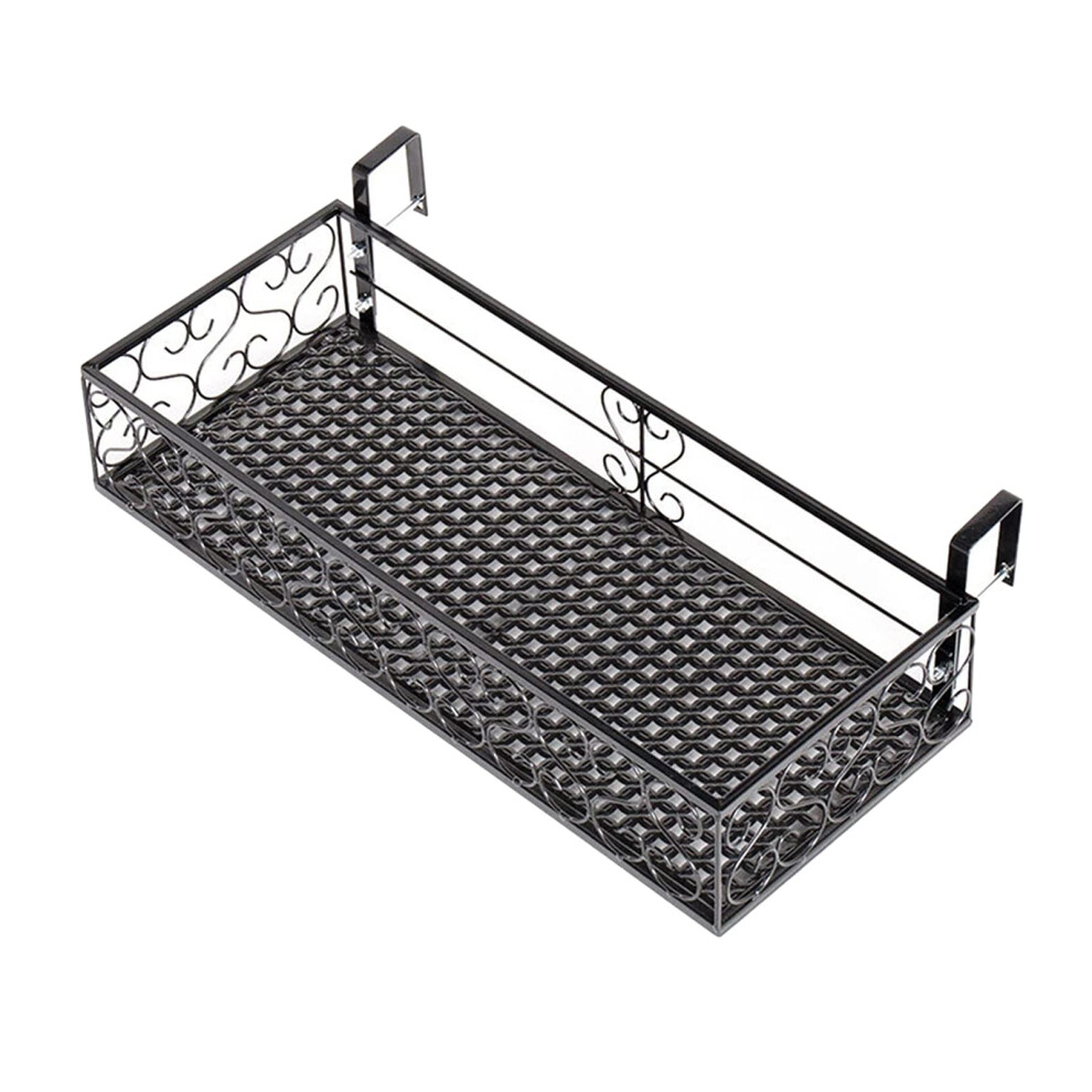 Balcony Flower Pot Stand Rack, Black Balcony Hanging Railing Planter Basket Flower Pot Holder Plant Iron Racks Fence Potted Stand Mounted Rectangular Plant Baskets Shelf Decoration