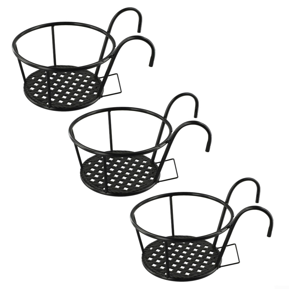 (Black, 15cm) Elegant Hanging Plant Stand Basket Stylish Railing Planters For Garden